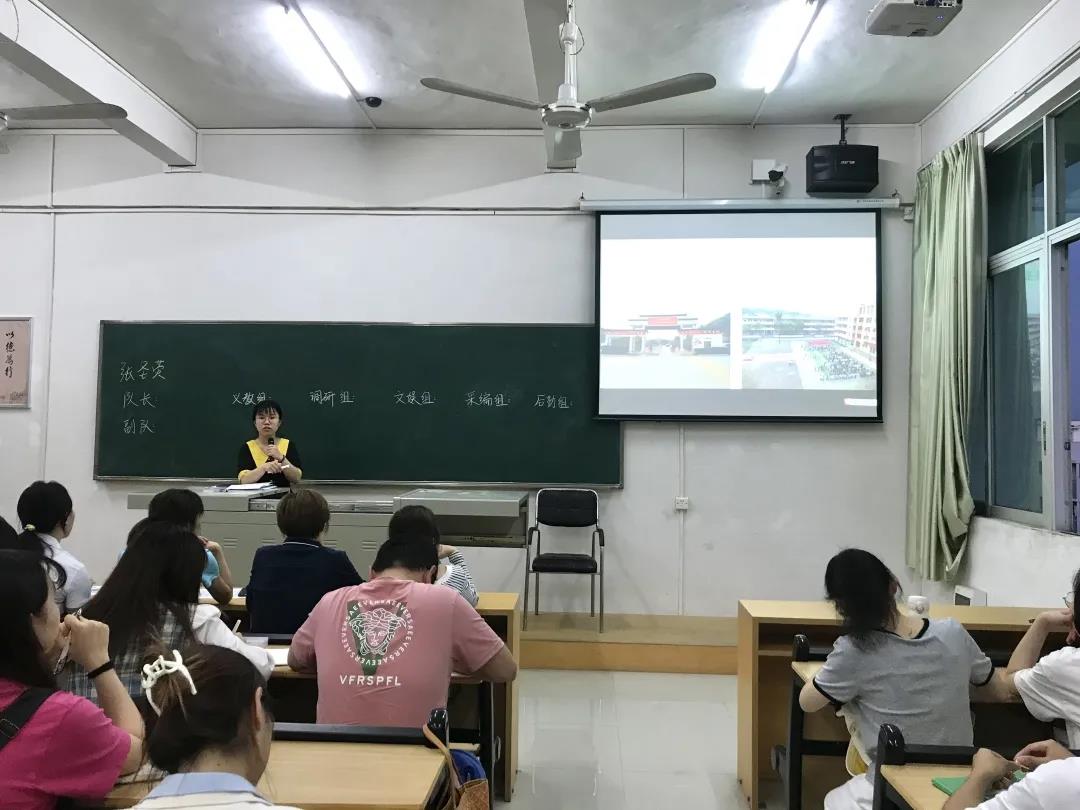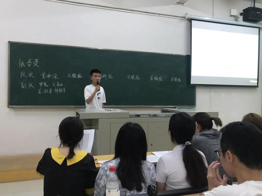 本次会议由张圣荧老师主持进行,她向同学们介绍了到场的陈明铭(义教组)、吴晓涵(调研组)、倪子茜(宣传组)、周金娣(后勤组)、陈敏莉(文娱组)五名带队老师;其次她以ppt形式介绍了此次三下乡活动的时间地点以及各小组的任务分配;最后希望同学们兼顾好学习与工作,顺利通过实习期的考验。