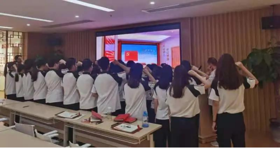 全体预备党员们将右手握拳齐肩举起,面向党旗庄严肃立,铿锵有力诵读《中国共产党入党誓词》,以饱满的热情和昂扬的姿态表达出为党的事业奋斗终身的决心和坚定信念。
