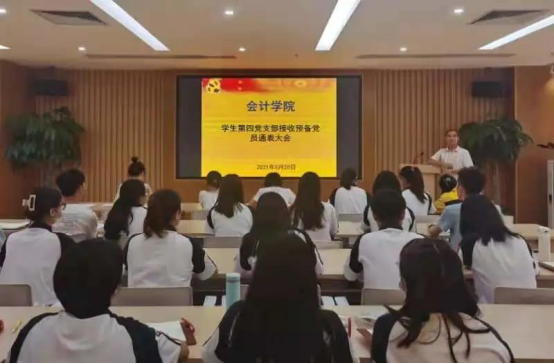 为庆祝中国共产党成立100周年,进一步激发党员爱党爱国的热情,增强党的意识,弘扬爱国主义精神,充分发挥党史资政育人的作用。5月20日,会计学院学生第四党支部在新时代党员讲习所举行接收预备党员通表大会及党史演讲团竞选活动。