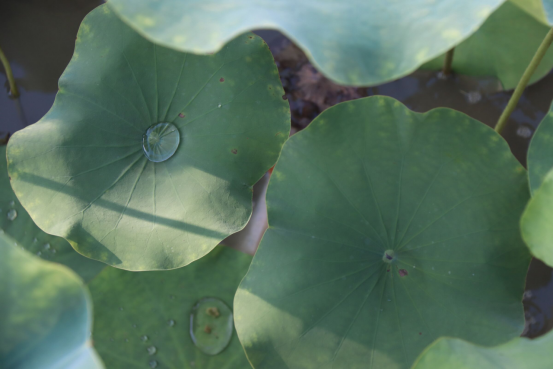 是新雨过后微风吹过摇曳滴下雨珠的嫩荷。