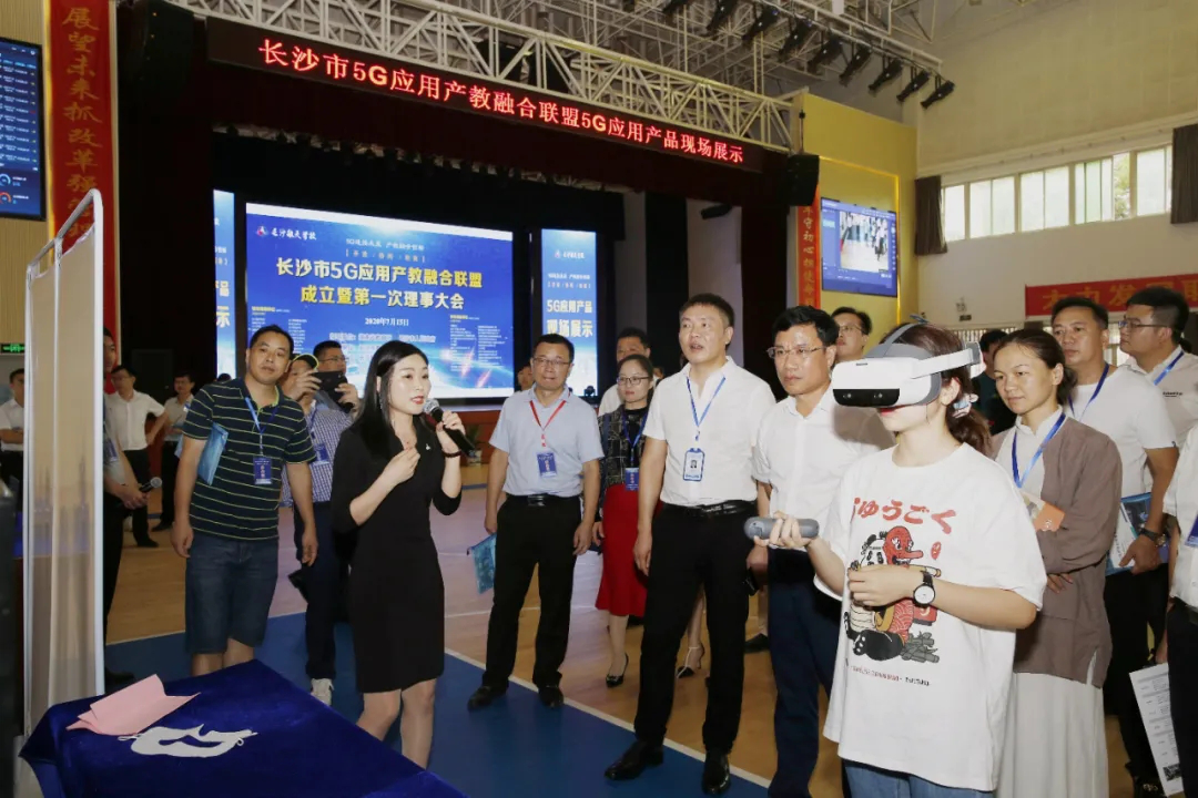 中国移动、中兴教育企业代表与长沙市5G应用产教融合联盟理事长廖万忠,共同签订了战略合作协议。中国移动为代表们作了5G应用讲座。企业代表现场展示了5G应用技术产品,与会代表近距离感受5G技术的独特魅力。