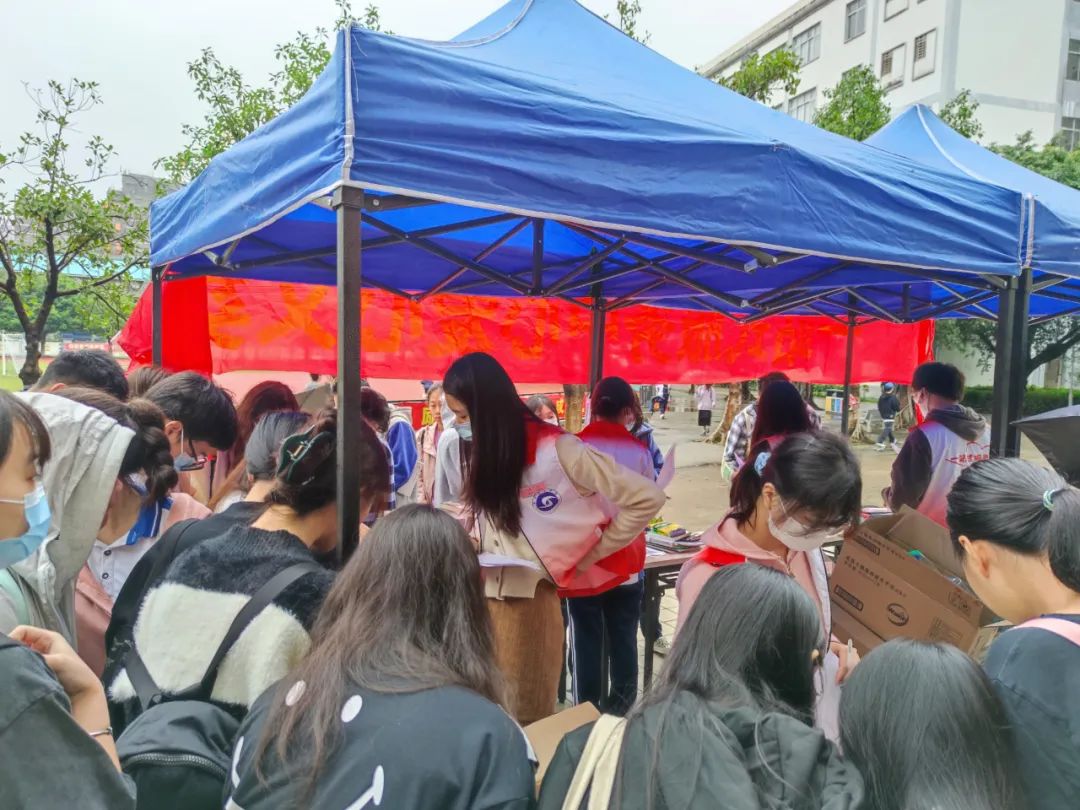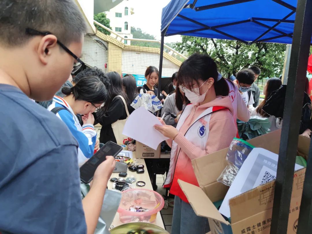 活动现场琳琅满目的物品吸引了许多老师和同学驻足观看,他们挑选心仪的物品,奉献自己的爱心,现场气氛十分热烈。