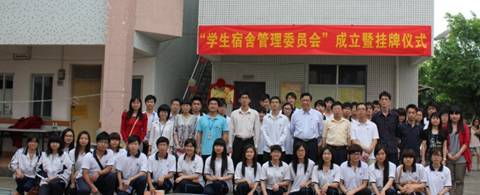 仪式最后,由钟伟强书记与黄鹏处长共同为“学生宿舍管理委员会”揭牌,并与参加会议的老师、同学们亲切合影,本次仪式圆满落幕。