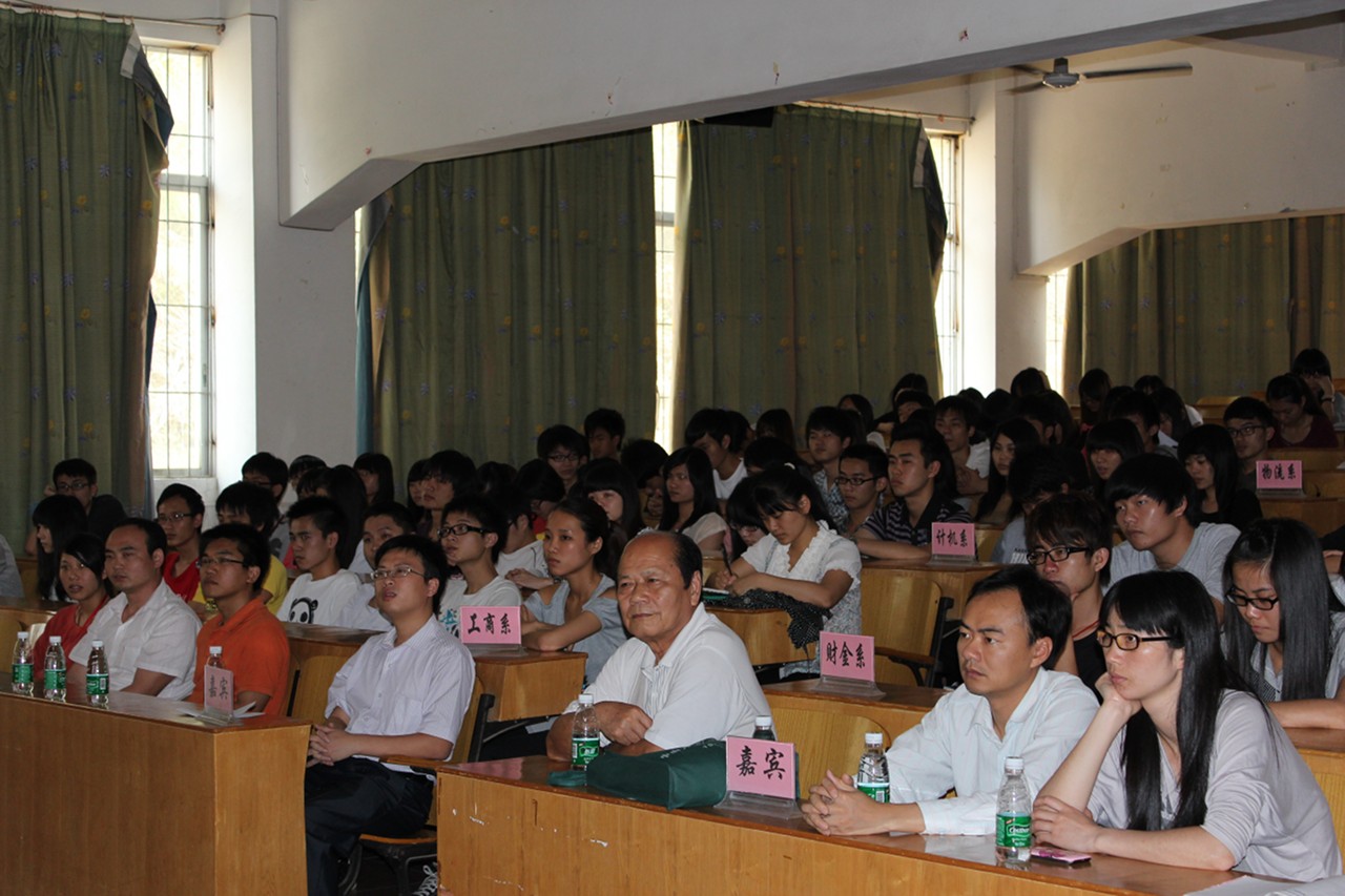 为培养大学生良好的思想道德品质和文明行为,加强团结、加强校风学风建设,不断优化育人环境,创建知感恩、讲诚信的和谐校园文化,4月26日下午,由学院学生资助管理中心、学院校友会和学院关心下一代工作委员会共同承办的“传递诚信之光常存感恩之心”诚信·感恩主题教育活动在学院计算机楼顺利举行。活动由学生处学生管理科孙洪波科长主持,参加活动的有学生处黄鹏处长、关工委林贻樑副主任、学院学生资助管理中心全体老师、学院校友会老师代表、学院各院系辅导员代表及 学院广州校区2010级、2011级获得了国家助学贷款、校友奖助学金以及无息借款的学生共计200多人。
