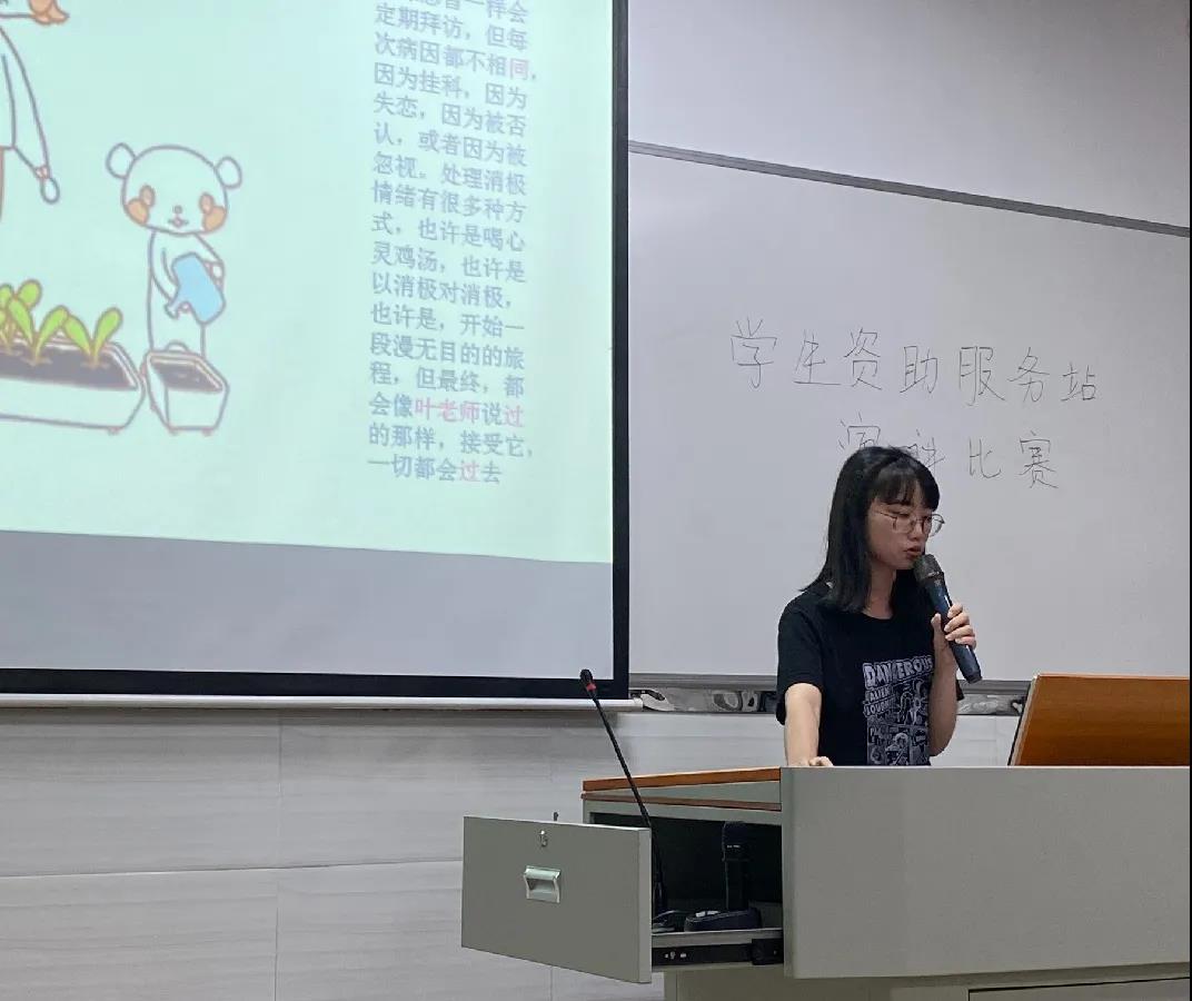 2021年4月28-29日,在学生处学生资助管理中心的指导下,花都校区学生资助服务站在教学楼504举办了“激扬青春,励志成长”演讲比赛,由学生资助服务站副站长和各部长担任评委。
