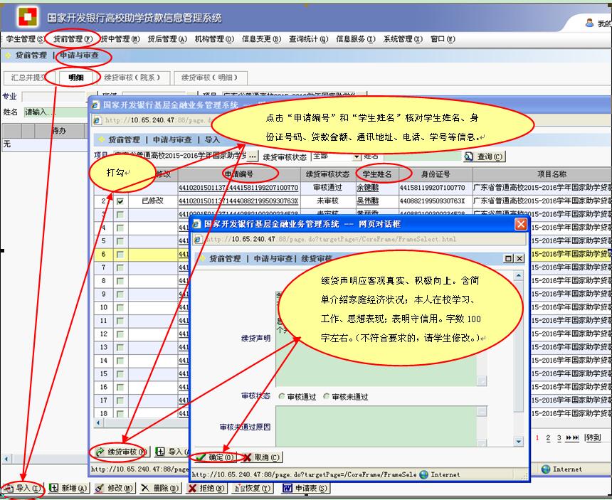 院系如何在助学贷款信息管理系统中审核学生的贷款申请