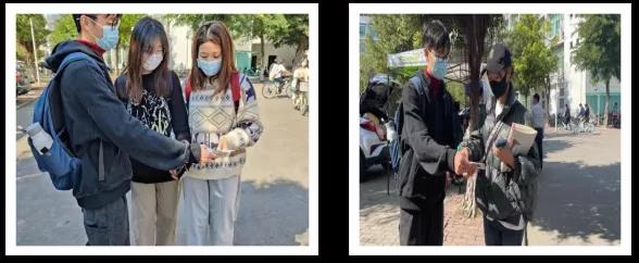 在不同的地段分工合作,积极地向同学们宣传反诈骗宣传教育知识,讲解如何有效地防诈骗,避免掉进骗子的“圈套”。