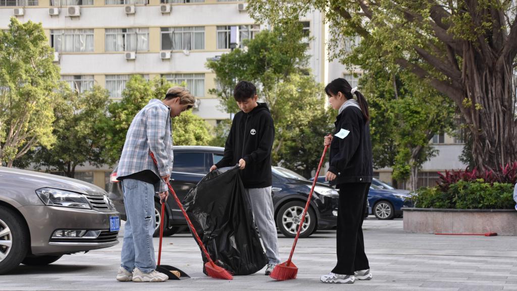 最后进行校园清扫环节,范围遍布整个校园,参赛选手在志愿者的带领下捡烟头、清扫校道上的垃圾落叶、清扫宿舍楼层的垃圾、捡拾绿茵草地中的果壳纸屑等。各参赛队伍与志愿者齐心协力,一起美化我们的校园。这项志愿清扫活动让大家认识到自己有一份责任,促进同学们对校园环境的认识并学会去保护我们的校园环境,使我们的校园变得更加整洁美丽。