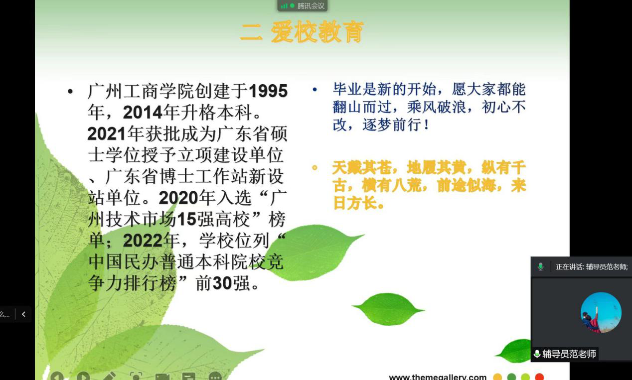 最后,范老师从求职防诈骗等安全教育、爱校教育方面给大家上了最后一堂课,希望同学们毕业后规划好自己的道路,敢于吃苦、乘风破浪!
