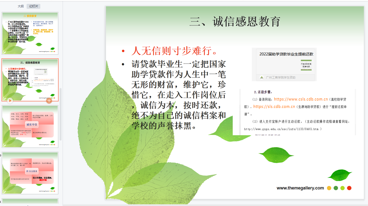 美术学院非常重视贷款毕业生的诚信还款教育,辅导员范老师首先对毕业生表达了学院的祝福,接着向同学们强调按时还款的重要性。她提到,如果学生没有按时还款,违约信息会被详细记录在个人征信系统中,从而对个人产生很大的负面影响。随后,范老师针对还款操作流程和注意事项进行了说明。