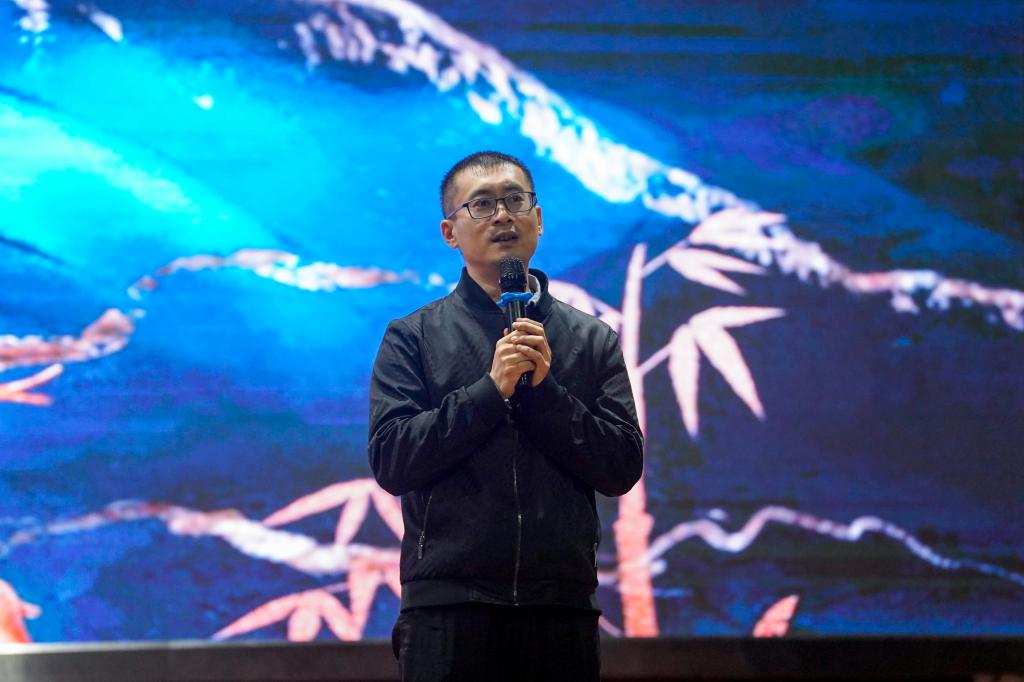 选手们朗诵结束后,由葛东辉老师上台点评。首先,老师对此次活动举办方的工作人员表示诚挚的感谢。其次,对参赛选手们提出建议,希望选手们能够脱稿朗诵,以及合理调整舞台站位。最后对朗读者活动表示期待和祝福。
