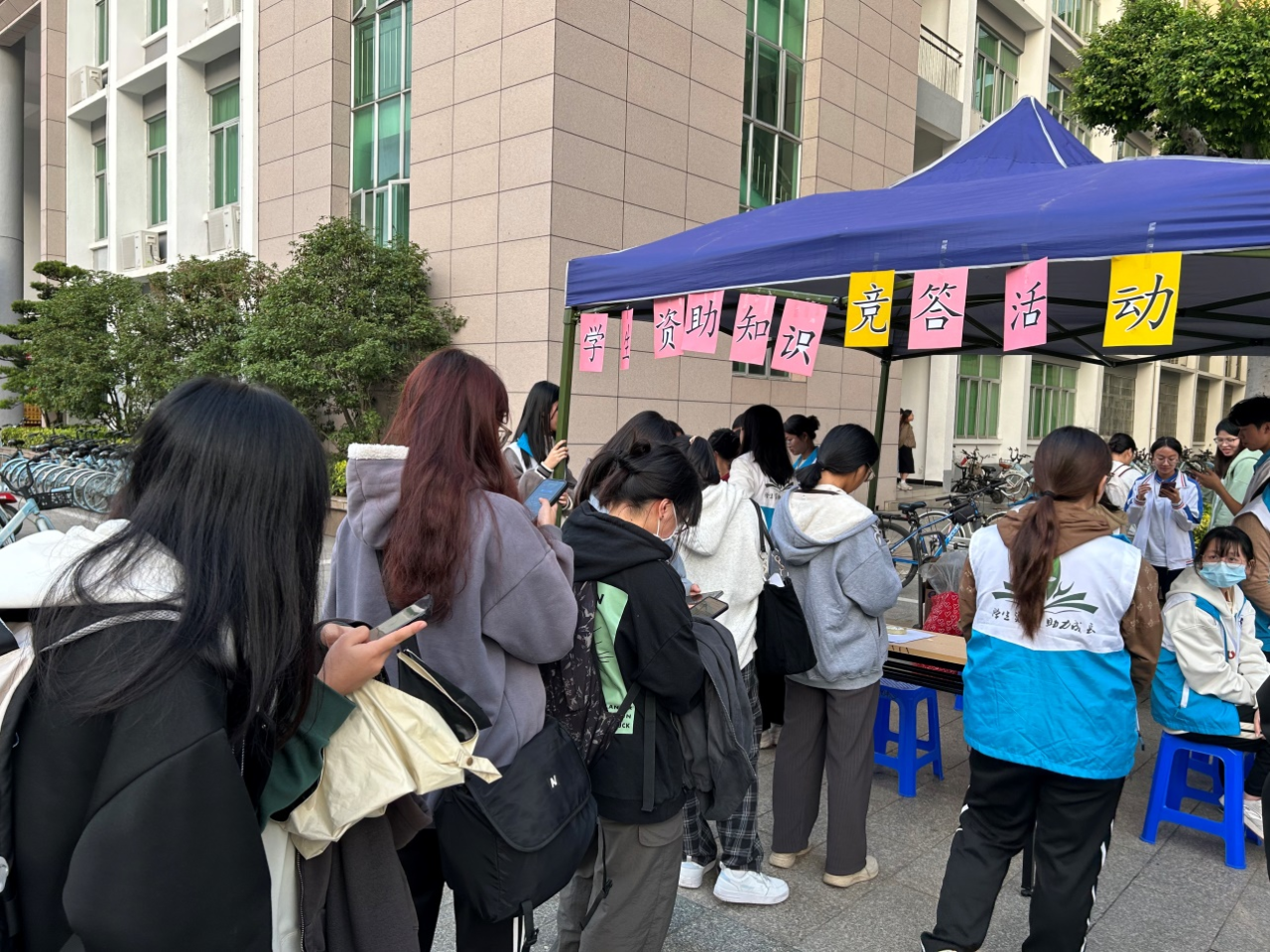 为进一步加强学生政策宣传工作,让同学们了解更多学生资助知识,本次活动还通过摆摊的形式面向全校师生开展学生资助知识有奖竞答活动,活动现场同学们积极有序参与,展现了良好的学生资助知识储备。
