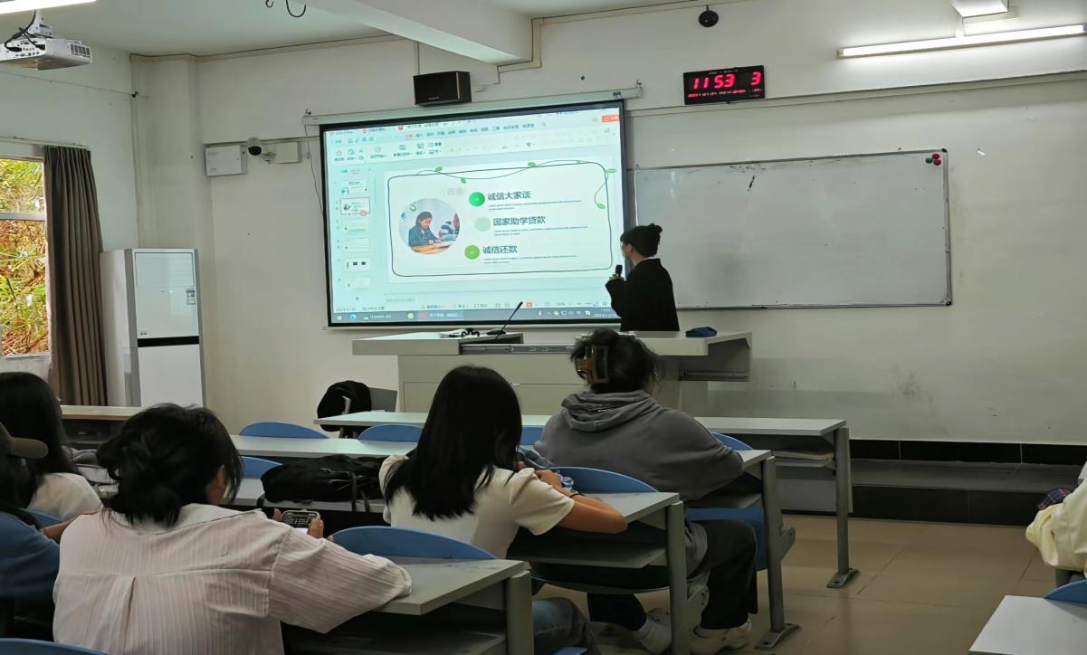 此外,各辅导员老师向在座的同学们讲述了国家助学贷款的还款相关事宜,在还款方面,各辅导员为同学们详细地解读还款的相关政策、还款的方式及具体的操作步骤,并强调拖欠贷款与利息的不诚信行为带来的严重后果,以此强化学生的诚信意识。