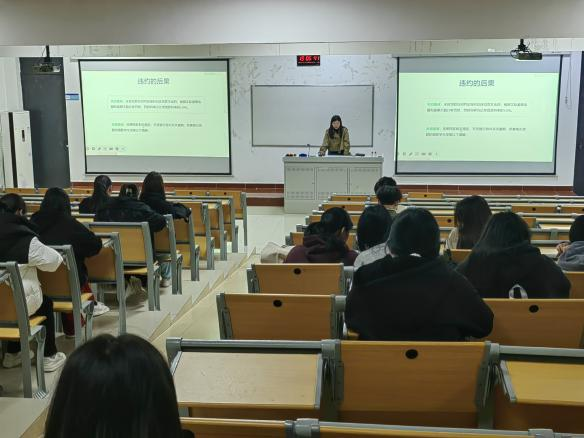 在讲座中,钱宏叶老师通过一个违约案例,向同学们说明了违约和失信惩戒的后果,警示同学们要按时还贷,诚信还款。