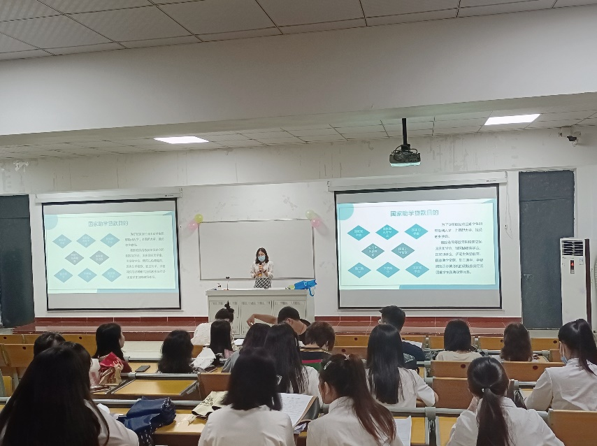 为了给学生树立一个正确的受助观念以及有效增强学生自身诚信意识,外语学院于2022年5月22日在教学楼417召开了以“践行诚信,未来可期”为主题的宣讲会。本次宣讲会由外语学院覃青霞老师和孙畅泽老师主讲,内容包括国家资助政策、国家助学贷款知识和诚信还贷的重要性,参加对象为外语学院2018级有申请高校助学贷款或者生源地助学贷款的毕业学生。