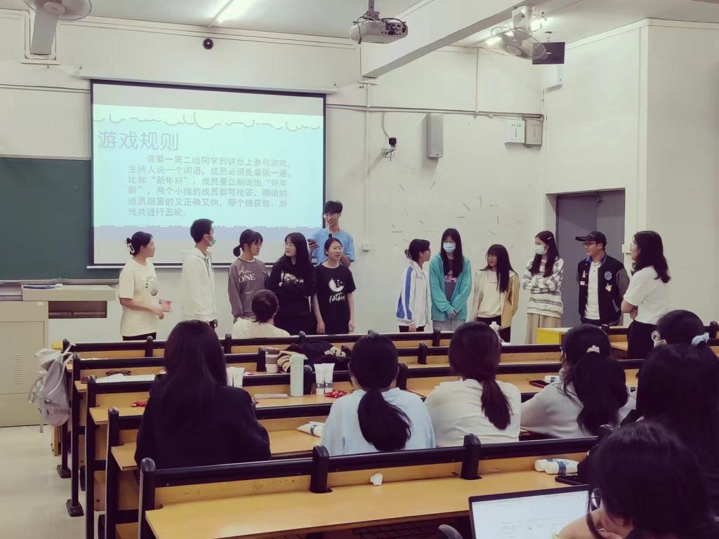 心理辅导活动在“正话反说”、“东问西答”、“123看这边”等一系列游戏中开场,现场气氛欢快而热烈。主持人根据现场人数,将在场的参与人员分成六个小组,小组之间两两PK。参与游戏的同学们都会获得一份小礼物,在游戏中获胜的小组还会额外获得一份礼物。参与人员积极配合,在互动体验中,同学们逐步打开了心理防线,建立了对团队的信任与支持,现场充满了信任、温暖的气氛。此外,主持人向大家讲述了两个受资助学生的积极案例,鼓励大家认真对待生活,积极舒缓压力,不负国家的资助和家人的养育,怀揣感恩之心做新时代优秀的中华新青年。