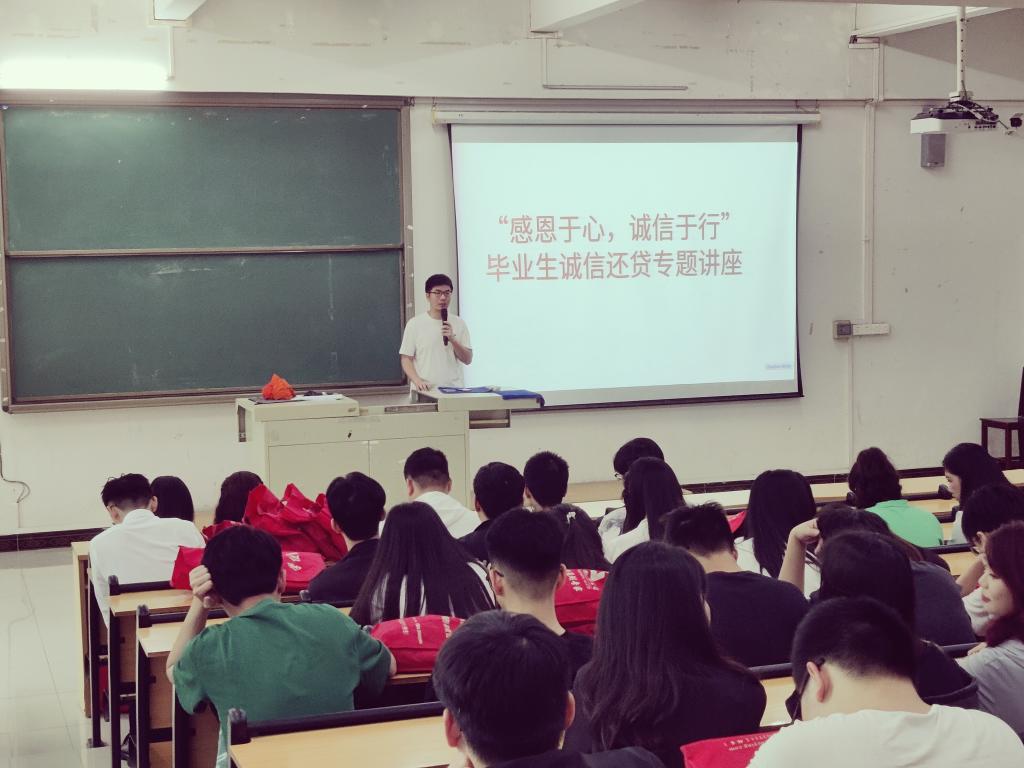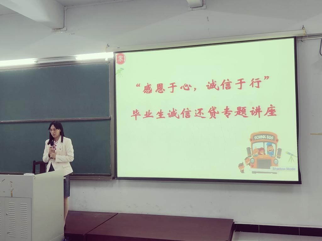 讲座开始,老师首先向同学们普及了国家助学贷款的相关基本知识,详细讲解了偿还助学贷款的途径与方法、学生在线服务系统的操作、毕业前需办理的事宜等,还着重强调了按时还款的重要性,若贷款人未能按时还款,留下违约记录,将对贷款人的个人征信造成很大的负面影响并持续终身。