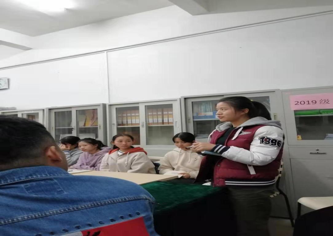 接下来是19级会计B11班的朱锦萍同学发言,她说的一句话让我们感触很深:即使生活中会遇到很多困难,但我们依然要直面生活,笑对生活。