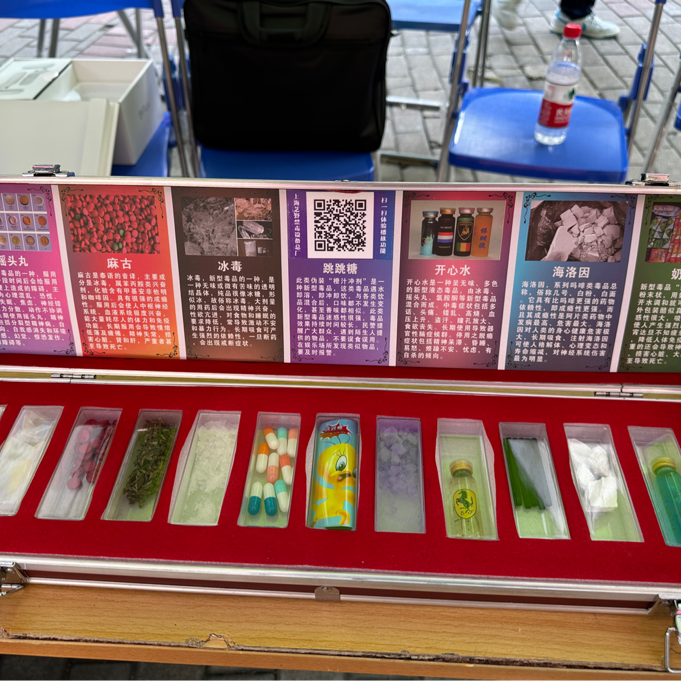 除以上体验活动外,广东省第四强制隔离戒毒所的警官们还展示了几种不同类型的毒品,并分发了禁毒防艾宣传手册。