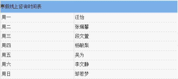 期待已久的寒假如约而至,kaiyun心理健康教育与咨询中心(以下简称“心理中心”)将一如既往陪伴在同学们身边,为同学们的心理健康保驾护航。心理中心在2023-2024学年寒假期间(2024年1月22日至2月16日)将持续为全校学生提供线上心理咨询服务,开放时间段为15:00-17:00,具体值班安排如下: