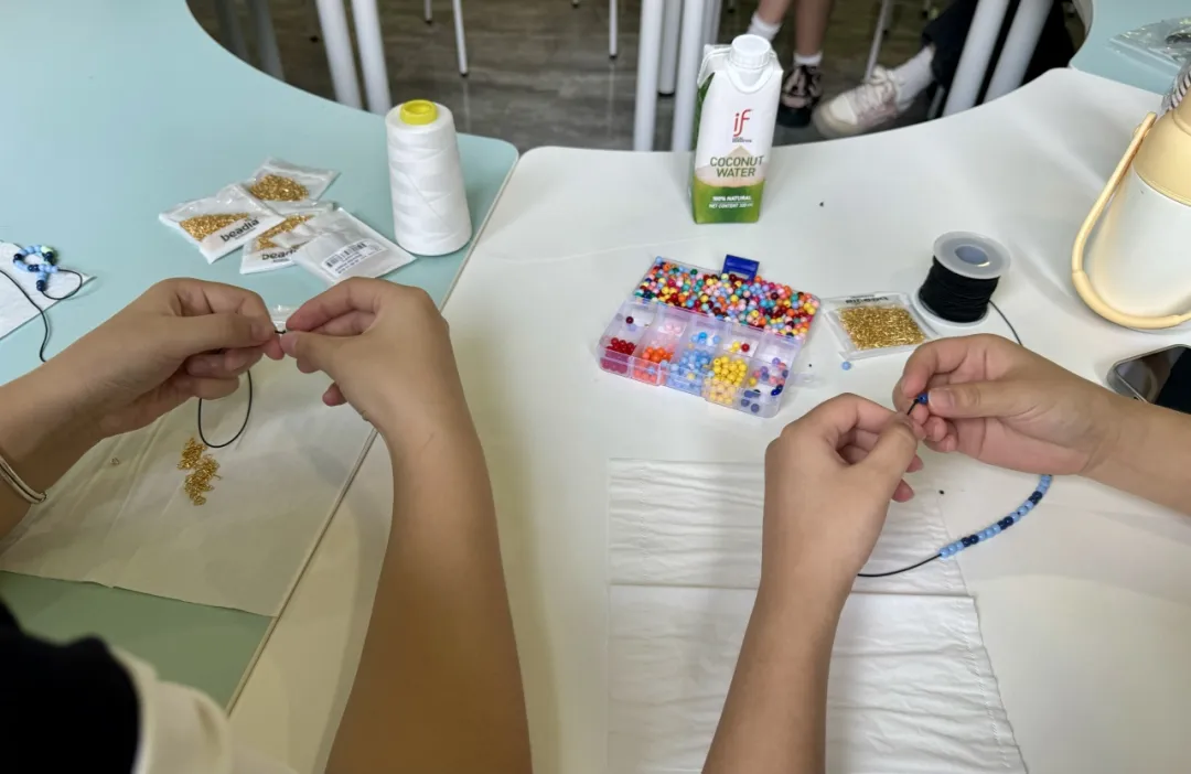 在挑选自己喜欢的扭扭棒和串珠的过程中,有深思熟虑的精心设计,也有灵光乍现的直接出击。小伙伴们的手指在材料间穿梭,在潜心装饰的同时期待着DIY作品的诞生。