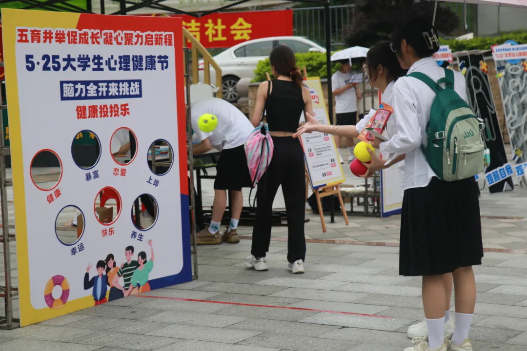 在主持人的带领下,领导及嘉宾参与现场游园会活动,体验了“脑力全开”健康投投乐和剑玉戳戳乐等多项精彩项目,感受挑战活动为学生提供了一个结合智力、脑力、体力的游戏体验,达到缓解压力、放松心情、适当锻炼身体的效果,维持更好的身心平衡与健康。