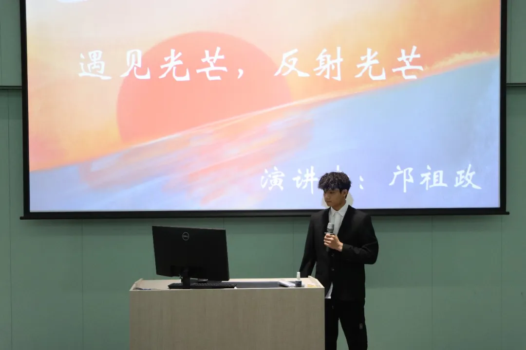 邝祖政同学深情地告诉我们,因为曾被积极心态的光芒照耀过,所以,想把光芒反射出去,照亮更多的人。通过分享自己学工助理的经历,他向我们展示了如何在生活中建立自信,实现自我成长。