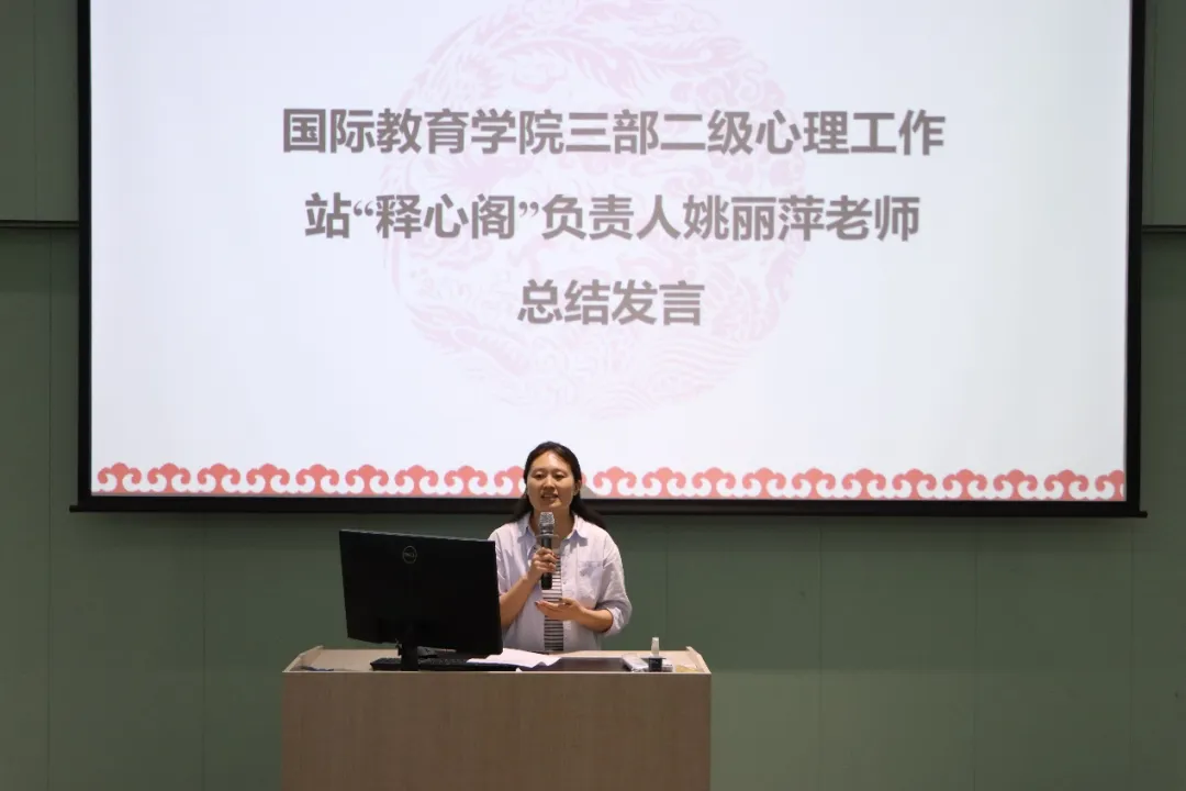 在比赛的最后环节,国际教育学院二级心理工作站“释心阁”负责人姚丽萍老师结束致辞。