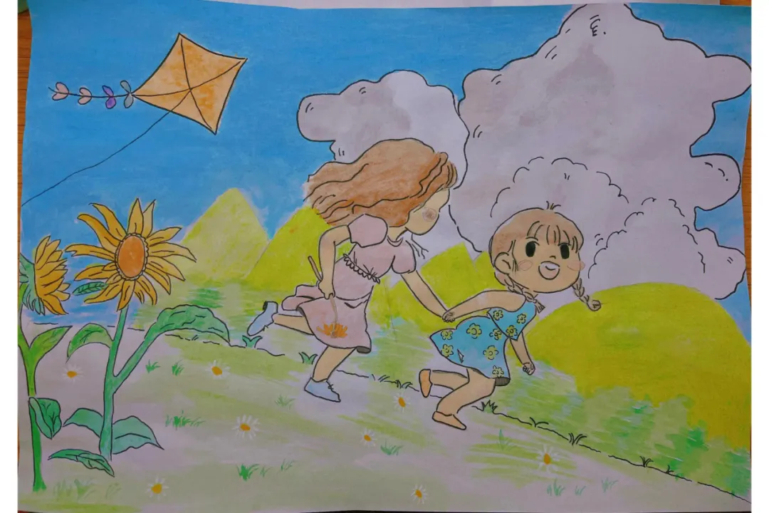 题目是去有风的地方,主要运用水粉颜料进行绘画创作,画中主要是两个伙伴一起去户外采风,游玩,景物有向日葵,野花,小草,树林,风筝,山脉组成。希望通过此画,去表达强调自然环境对人类心理和生理健康的积极影响。这种简短而又频繁的接触自然,有助于我们从日常的压力中恢复,增强我们的整体健康。