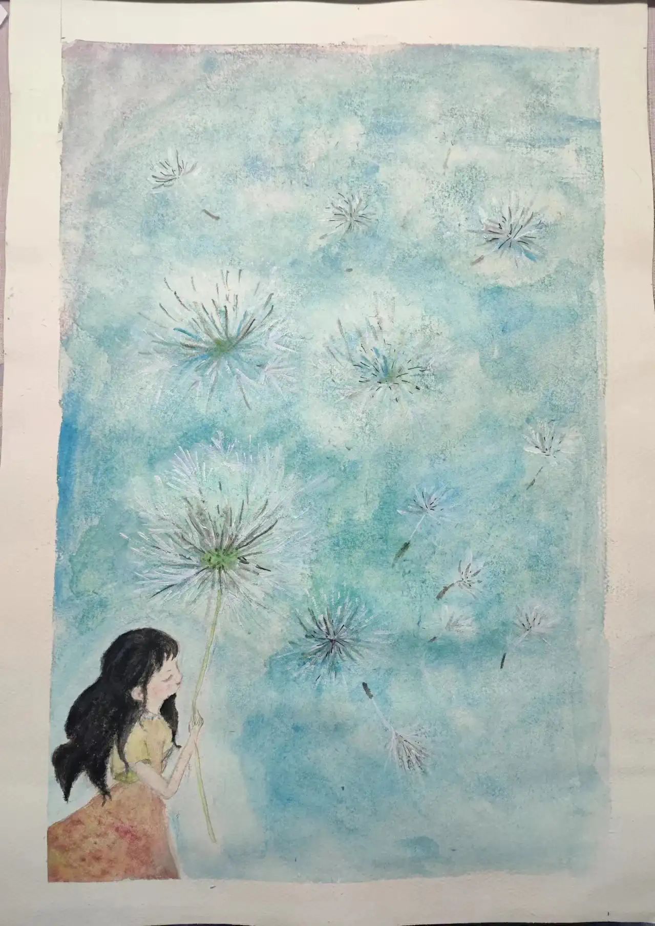 蒲公英的每一颗种子都是一个小小的希望,轻轻地随风飘扬,落在大地的每一个角落,落到每一个人的心中,种下希望。以蒲公英为载体,向每个人传递希望,让其生活像蒲公英一样充满自由与希望。主体选用蓝色为背景色,让人感到平静舒畅。