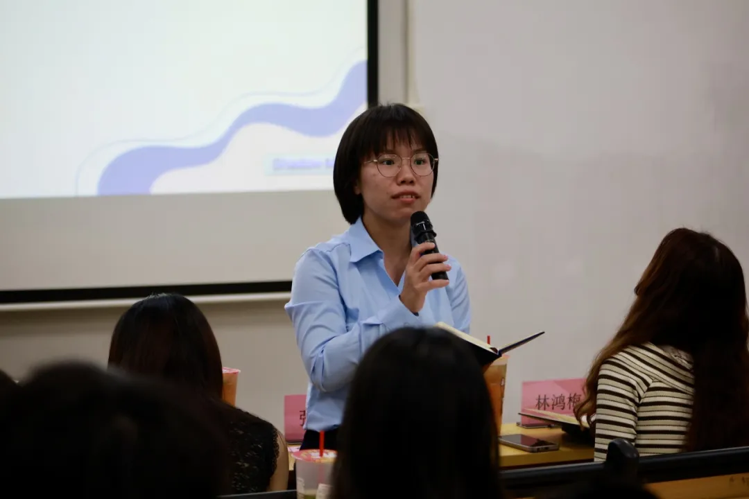 “德学·五进”辅导员工作室主持人罗爽妍老师作总结发言。罗爽妍老师介绍了工作室的发展历程,并对新学期工作进行了规划,同时为学生团队成员分配了指导老师。罗爽妍老师指出,希望同学们珍惜“德学·五进”辅导员工作室这个成长成才的平台,通过共同努力不断扩大工作室影响力,创新校园文化活动。随后,宣传策划组张圣荧老师、钟晓燕老师,网络思政组姚舜老师、刘唐成老师,培训组林鸿梅老师,科研组钟伟老师分别上台对工作室新学期的工作作出指导,同时也希望与同学们紧密相连,共同促进工作室的蓬勃发展。
