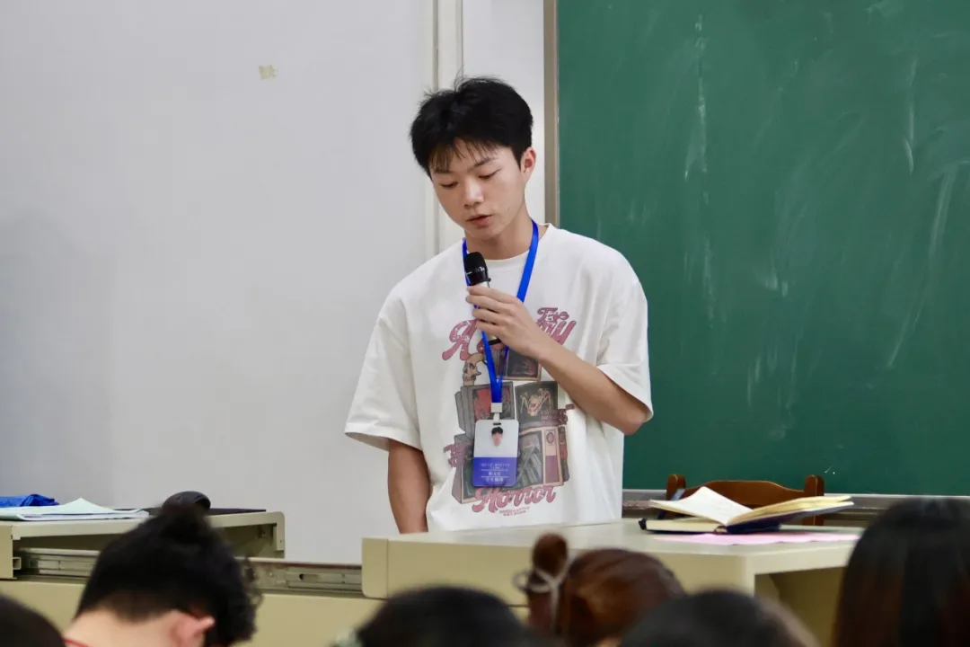 本学期初,工作室面向全校全体学生招募第三批成员,经过严格的面试,最终有14位同学成功加入工作室。在自我介绍环节中,同学们用独特的方式展示着自我,或以风趣幽默的语言分享自己的兴趣爱好和过往经历,或以深情并茂的讲述,表达了对加入这个大家庭的期待与憧憬。第三批学生团队的加入,为“德学·五进”辅导员工作室注入一股新的活力,让我们共同期待,在接下来的日子里,我们能够携手并进,共同书写属于我们的精彩故事。