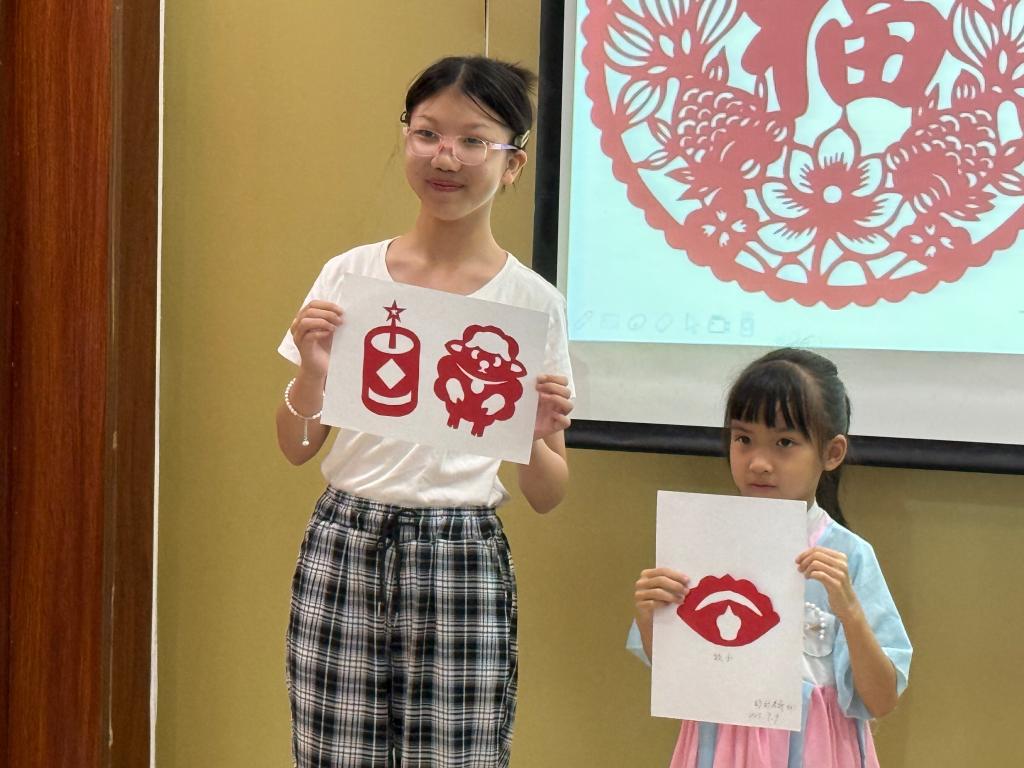 在四合村党群服务中心,一场别开生面的非遗剪纸课正热火朝天。广东省外语艺术职业学院益乡筑梦实践队以“德”为引,将剪纸技艺与德育教育深度融合,为乡村儿童打造沉浸式文化体验课堂。青穗梦之队主动协同,承担拍摄记录工作,助力非遗传播。课堂上,小朋友们稚嫩的手指翻动红纸,剪出“春”、灯笼等作品;队员们耐心指导,提醒安全细节。镜头捕捉下的,不仅是非遗技艺的“活态”传承,更是文化自信在乡村儿童心中的悄然生根。