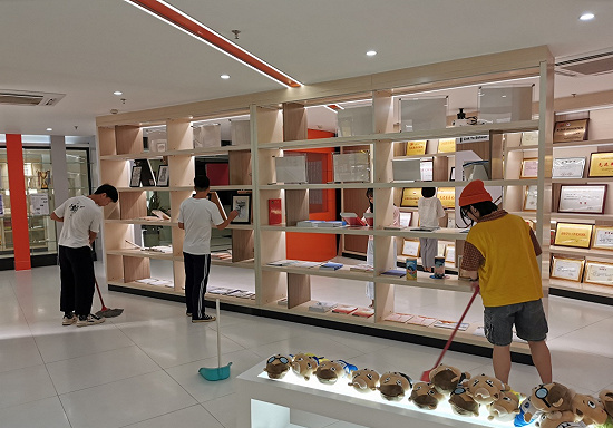 为积极践行我院“以德为行 以学为上”教育思想和“五进”教育实践活动,培养学生良好的劳动习惯,增强学生文明卫生意识,11月5日,我院易班中心学生工作站联合学生资助服务站在徳学成果展厅开展劳动教育实践活动。