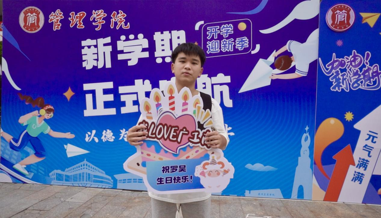 管理学院新生罗昊表示:“在报到日度过生日倍感幸运,老师和同学准备的惊喜让我深刻感受到广工商的温暖。”工学院朱炜城同学说:“生日与大学开学日的重合意义非凡,感谢学长学姐的热情帮助,我将珍惜时光,努力成长。”