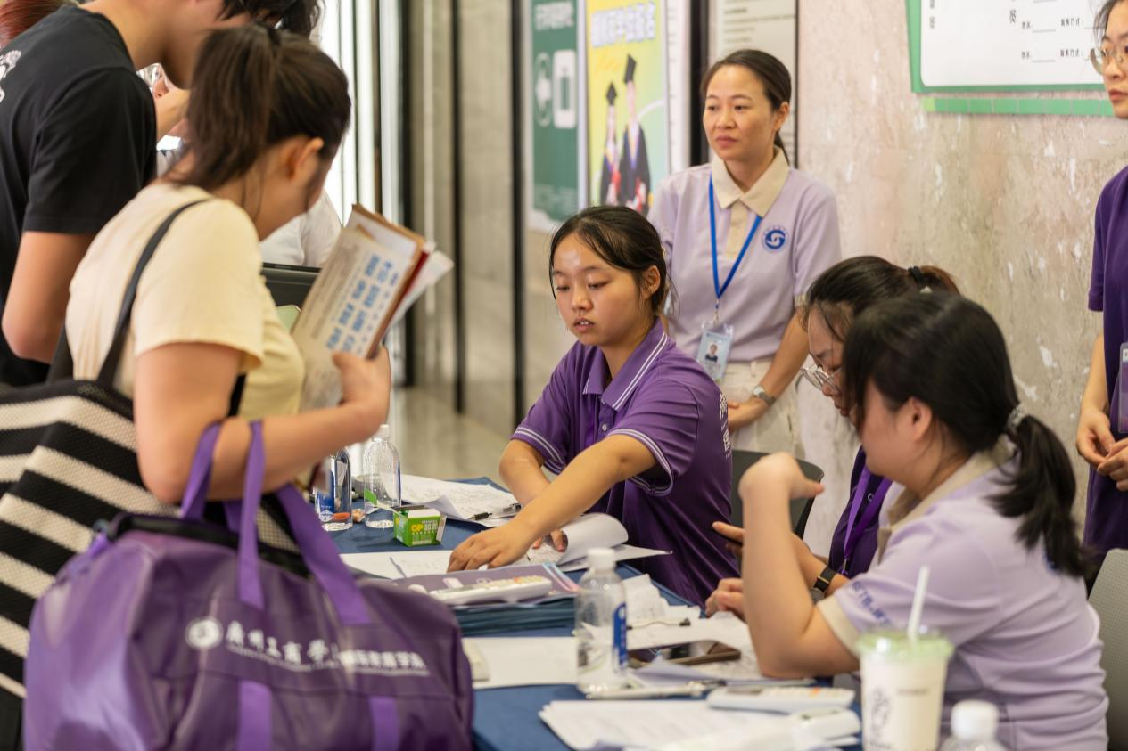千余名志愿者身着蓝色服装穿梭校园,成为迎新现场一道靓丽风景。他们协助新生完成注册、领取军训服装、开通校园网络、入住宿舍等流程,实现高效有序报到。学校还专设“绿色通道”,为家庭经济困难学生提供便捷入学服务。