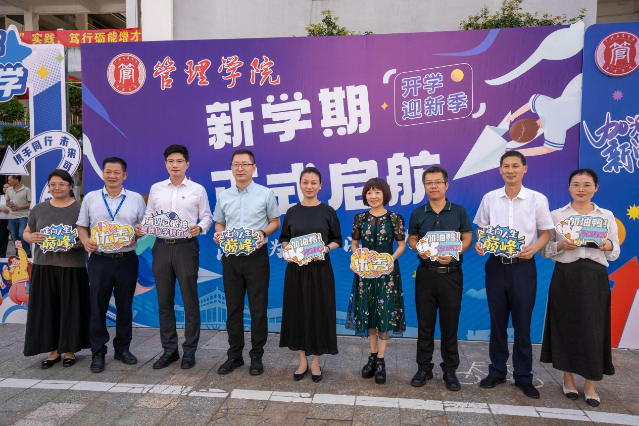 校园内多处布置了励志横幅、大型拱门和创意打卡点,“实践砺真知,青春绽芳华”“与优秀同行,与时代共振”等标语激发新生奋进热情,不少家庭驻足合影,记录难忘时刻。