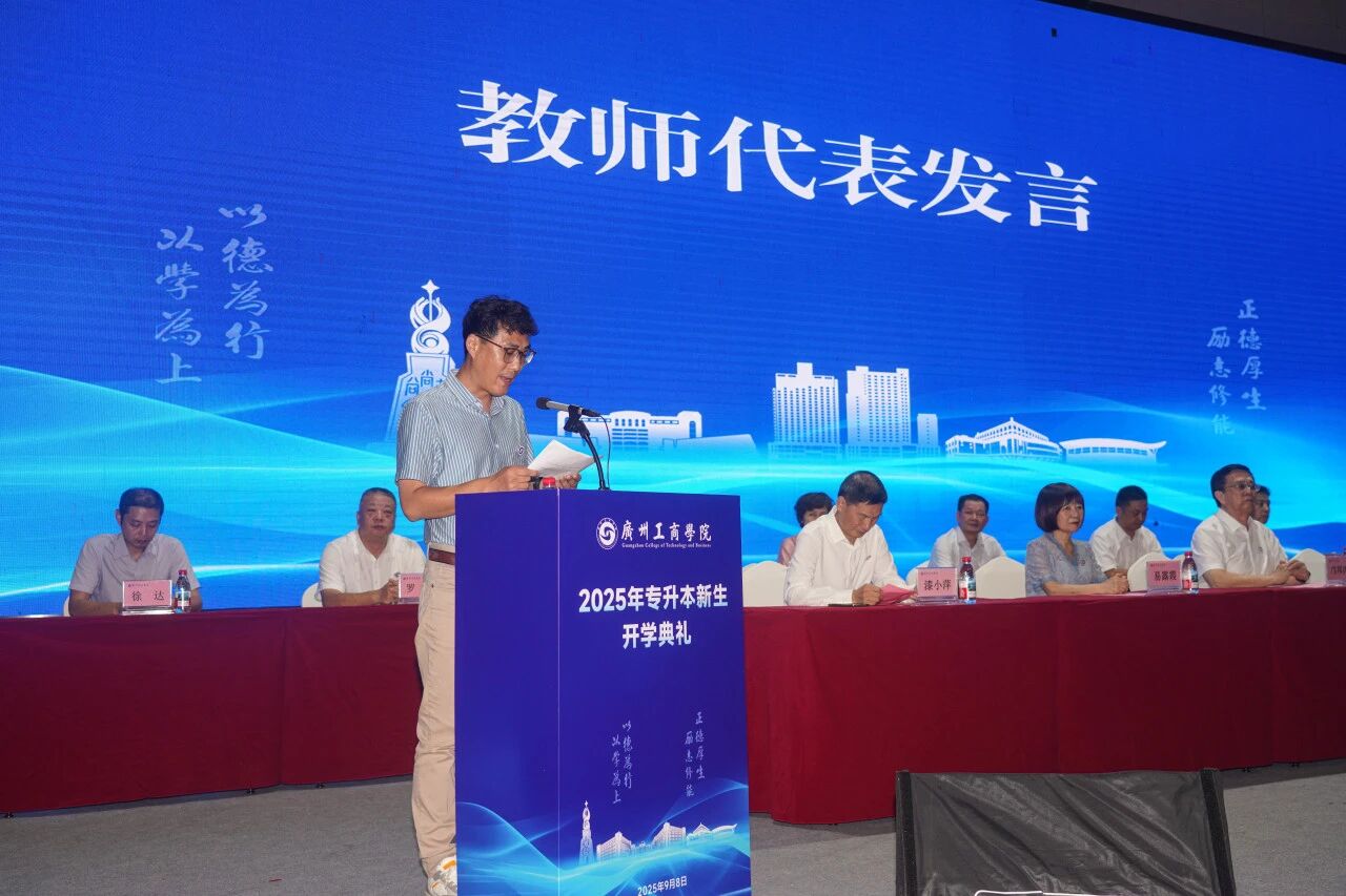 教师代表也结合教育教学经验为新生指明方向。花都校区美术学院崔国顺副教授鼓励同学们“将‘我不行’变为‘我可以’”“把‘差不多’变成‘做到极致’”“变‘等机会’为‘创造机会’”,期待大家锚定湾区发展、强化项目实践、提升数字与人文素养。三水校区通识教育学院王宇副教授则从立德修身、终身学习与全面发展三个维度,叮嘱同学们珍惜光阴、书写无悔青春。