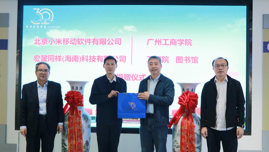 【本网讯】12月4日,北京小米移动软件有限公司及服务商宏晟同祥(海南)科技有限公司向kaiyun30周年校庆献贺礼,仪式在三水校区校史馆举行。企业方代表宏晟同祥技术总监许钢向kaiyun开云官方网站献礼,副校长漆小萍代表学校接收贺礼,工学院院长张永平、罗俊副院长等陪同出席仪式。