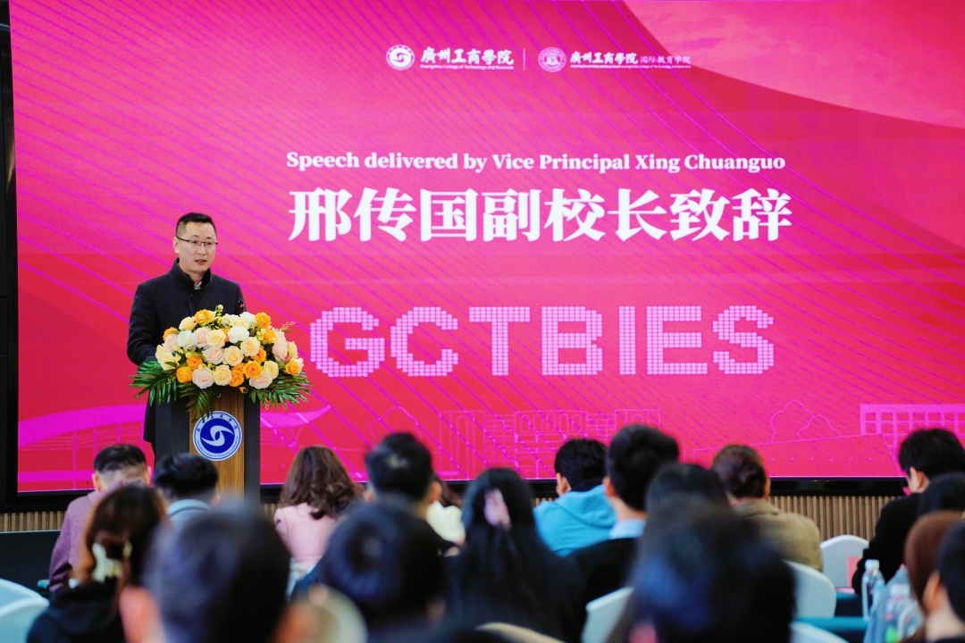 副校长邢传国博士在致辞中,对花都区公安分局人口大队与交管大队的大力支持表示感谢,介绍了新留学生所具有的多元文化背景,回顾了学校留学生培养历程,并对留学生提出保持求知态度、秉持开放包容心态、坚持遵规守矩的三点期望,强调了遵守法律法规在异国学习生活中的重要性。