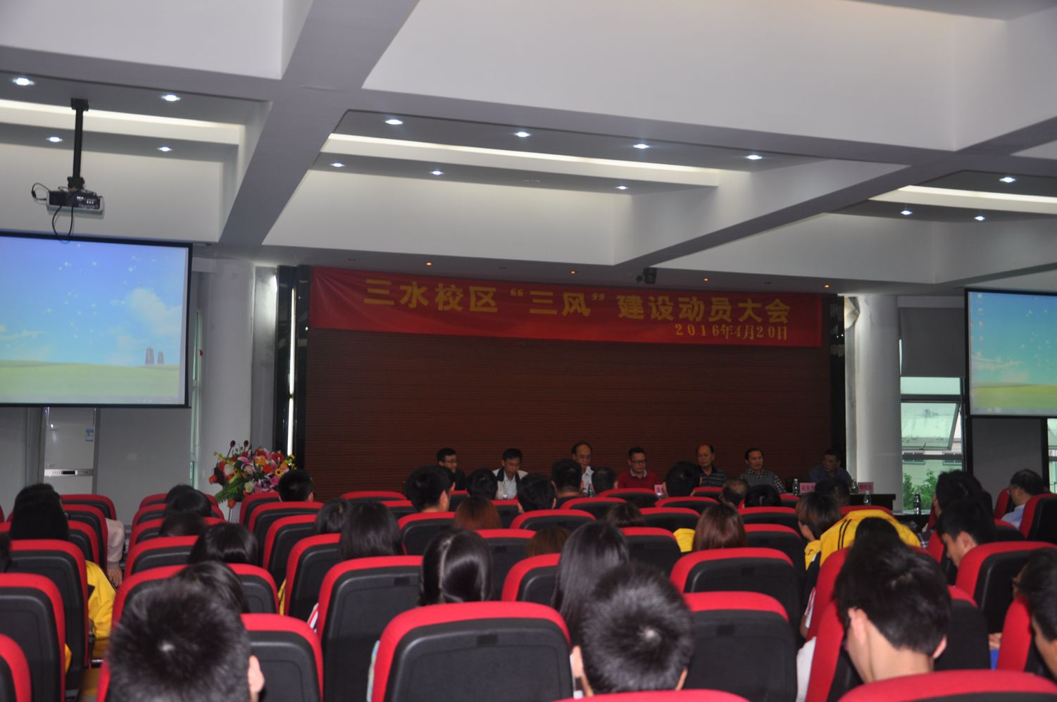 【本网讯】4月20日,kaiyun开云官方网站三水校区“三风”建设活动月启动会在三水校区行政楼学术报告厅举行。学院副院长朱特威,终身名誉顾问林贻樑,各系(部)、处(室)、二级学院相关单位负责人和学生代表参加了本次会议。会议由三水校区管委会主任何国林主持。