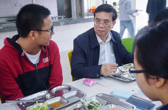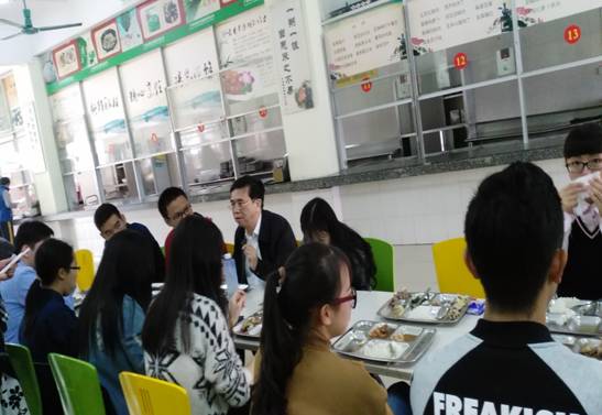 就餐时,同学们就专业考核方式、学生素质教育、教学设备开放、运动场地、图书馆建设及学院周边环境等问题与邝院长等领导展开了热烈的讨论。有同学表示,教师们和蔼可亲,校园文化健康向上,感觉学院像“家”一样温馨。也有同学对学院的发展提出了自己的建议和意见。邝院长就同学们均一一做出详细解答,并表示学院将采纳同学们提出的好的建议和意见,不断完善学院的教育管理和各项建设。邝院长强调,同学们应该积极参与学院“五进”活动,加强对“以德为行 以学为上”教育思想的学习,提升自身的品德修养、身体素质和专业技能,成长为德智体美全面发展的合格大学生和社会的优秀人成才。