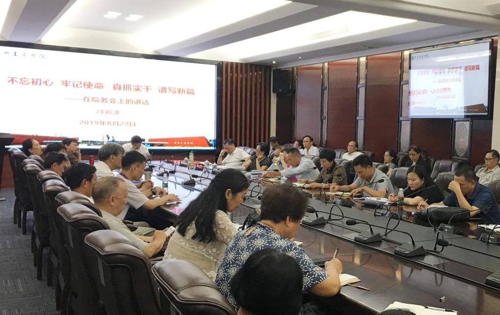 【本网讯】2019—2020学年度是学院迎接教育部本科教学工作合格评估的关键年度,也是学院办学规模与办学质量迅速提升的重要年度。在新学期,学院将迎来18个省市7500余名学生到校就读,为做好迎新及迎评促建的准备工作,8月29日下午,学院院长邝邦洪教授在学院中层以上干部会上做了《不忘初心、牢记使命 真抓实干 谱写新篇》的重要讲话。