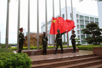 【本网讯】为了进一步加强新时代大学生爱国主义教育,激发爱国爱党热情,引导大学生树立正确价值观,9月2日上午,我院在厚德广场举行了以“我为祖国升国旗”为主题的升旗仪式。学院院长邝邦洪教授、三水校区管委会主任何国林、党员教师代表以及2018级全体学生4000多人参加了升旗仪式,团委书记洪卫烈主持。
