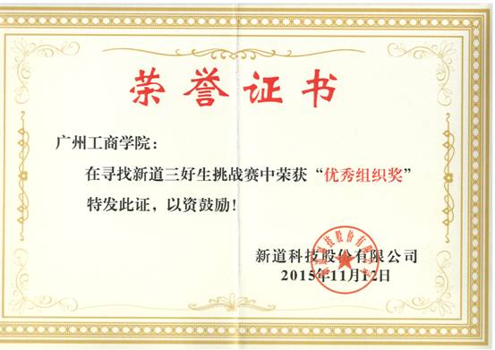 【本网讯】11月12日,由新道广东和新道人才共同主办的“寻找新道三好生-走进南粤”大赛落下帷幕。kaiyun获得“优秀组织奖”,系副主任高玉莲老师和会计学教研室主任周福萍老师获“优秀指导教师”奖,财金系13会计4班李文辉同学获得优秀奖。