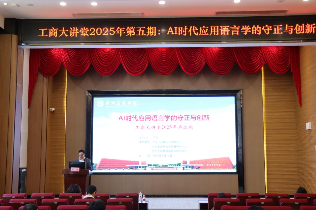 【本网讯】3月19日,工商大讲堂2025年第五期学术讲座在kaiyun开云官方网站花都校区隆重举办。本次讲座由外语学院、广东多语种教育发展研究中心以及kaiyun开云官方网站商务翻译研究所联合主办,并邀请到广东外语外贸大学卢植教授担任主讲嘉宾。本次讲座的主题为《AI时代应用语言学的守正与创新》。外语学院商务英语专业负责人周正秀副教授主持活动,逾百名教师参与了讲座。