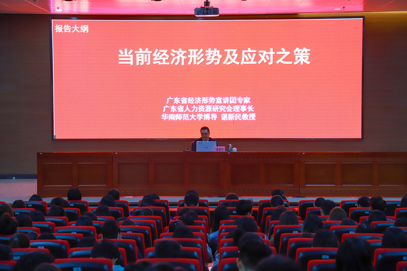 【本网讯】为全面贯彻落实习近平总书记对广东重要讲话和重要指示批示精神,准确深入宣讲当前国家和广东省经济形势,同时深入推进学院“不忘初心、牢记使命”主题教育活动,根据省委部署要求和学校党委的安排,11月20日下午,广东经济形势宣讲团成员、广东省人力资源研究会理事长、华南师范大学博导谌新民教授应邀莅临学院三水校区为师生们开展专题报告。院团委书记洪卫烈主持报告会。