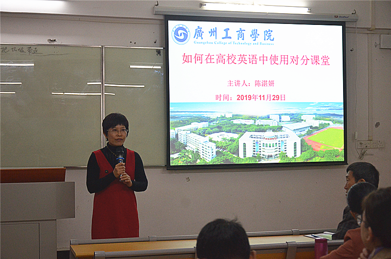 【本网讯】11月29日上午,岭南师范学院外国语学院大外部副教授、大学英语对分课程工作室负责人、华中师范大学和美国加州周丽大学洛杉矶分校访问学者陈湛妍应邀来我院做了题为“如何在英语教学中使用对分课堂”的专题讲座。讲座由教务处、教师教学发展中心主办,外语系承办,教务处处长李赣主持,现场约100名教师参加。