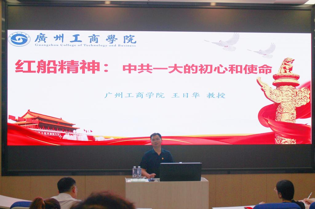 【本网讯】为深入学习领会习近平总书记在党史学习教育动员大会上的重要讲话精神。4月7日晚,国际教育学院在三水校区以“红船精神——中共一大的初心与使命”为主题,开展了2021年春季思政第一课课程讲座。本次讲座由副校长兼国际教育学院院长王日华教授主讲,支部书记刘康喜主持。