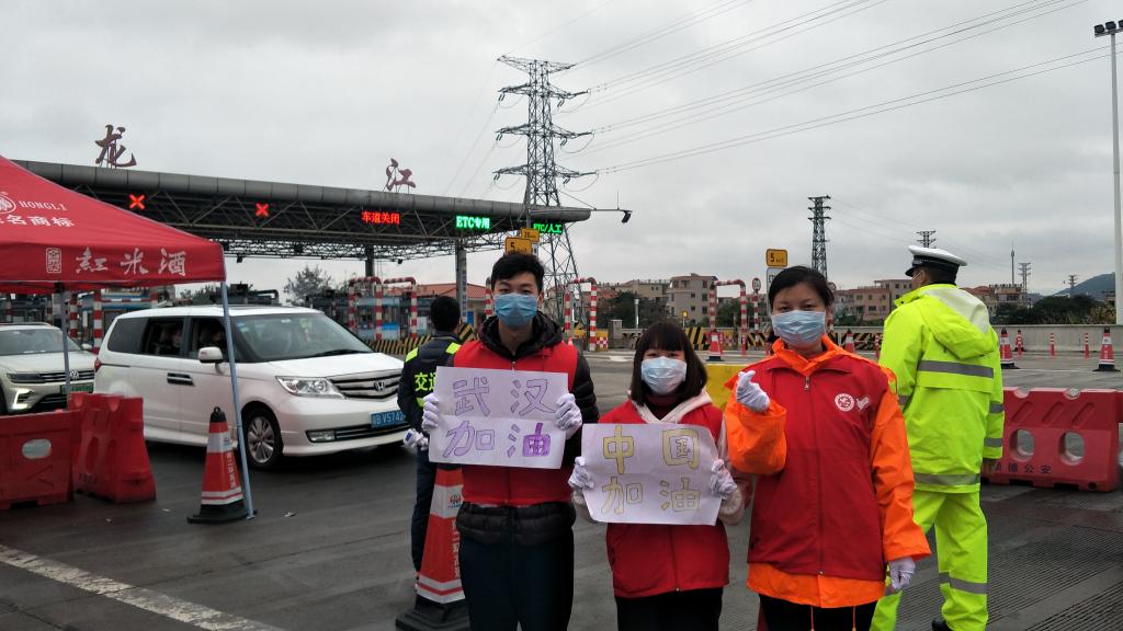 关卡口志愿者们和警察们的盒饭是由镇上的一个饭店送来,还有群众自发赠送水果和汤圆。“有许多热心的群众自发给我们送来一些吃的东西,这让我们无比的动容,我们感受到人民是我们最坚强的后盾。期间,在和一名医护人员的交流中,我知道了在一线的医护人员的工作环境是有多么艰苦和恶劣。”